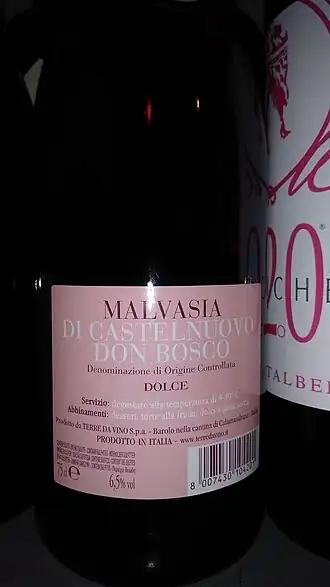 1. ^ a b "Malvasia di Castelnuovo Don Bosco DOC". Italian Wine Central. Retrieved 6 October 2019.