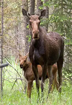 • Moose, Alces alces, montane and subalpine forests, riparian, meadows, uncommon
