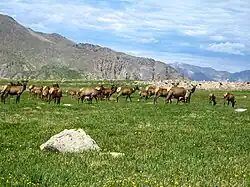 • Elk, Cervus elaphus, montane, and subalpine forests, meadows, tundra, abundant