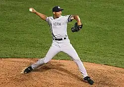 Mariano Rivera (born November 29, 1969) is a Panamanian-American former professional baseball pitcher who played 19 seasons in Major League Baseball (MLB) for the New York Yankees, from 1995 to 2013. Nicknamed "Mo"[1] and "Sandman",[2] he spent most of his career as a relief pitcher and served as the Yankees' closer for 17 seasons. A thirteen-time All-Star and five-time World Series champion, he is MLB's career leader in saves (652) and games finished (952). Rivera won five American League (AL) Rolaids Relief Man Awards and three Delivery Man of the Year Awards, and he finished in the top three in voting for the AL Cy Young Award four times. In 2019, he was inducted into the Baseball Hall of Fame in his first year of eligibility, and is to date the only player ever to be elected unanimously by the Baseball Writers' Association of America (BBWAA).[3]