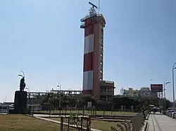 Ever since the harbor was built, the area south of the port has accreted significantly, forming the present day's beach mainly due to the presence of wave breakers laid for the construction of the harbor, although the coast in the northern region has undergone severe erosion.[14] Eventually, the north-drifting current widened the beach to its present extent. The beach was formed as a result of arresting the littoral drift by the port's breakwater.[15][16] The area of the beach is increasing 40 sq m every year due to progradation.[17]