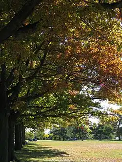 Mau Mau Island, also called White Island, is an artificial island within the park, located between two branches of Gerritsen Creek.[13] Created possibly by 1934,[5]: 213  it was made out of garbage.[14] It was supposed to be included within an expansion of the golf course, which was never built; a temporary bridge was the only object erected from this plan, and only the footers from this bridge remain.[5]: 213