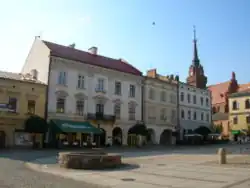 ![]() Market Square viewed from Katedralna Street, with the Tarnów Town Hall in the center | |