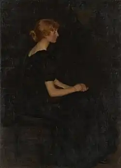 In about 1902 Mary herself traveled, with her Charterisville friend Ursula Foster[10] (model for Fox's Lady in Black and A Love Story) to study at the Westminster School of Art and at the Slade.[4] She then travelled and painted throughout Europe. Her mother died not long after her return, in 1904, when Mary was 26. Her father remarried in 1913, to Mavourneen Bertha Wettenhall who was only two years older than Mary.