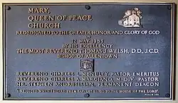 Mary Queen of Peace Catholic Church, Pottsville, was established in 1920 as a new parish under the direction of Cardinal Dougherty, Archbishop of the Philadelphia Diocese. The new parish, organized by father George Shea was created to serve the faithful of the northern part of the city apostle and the surrounding area. From the humble beginnings in the renovated stable on the former Seltzer property, the parish celebrated mass in a new chapel on August 15, 1920. Dedication for the present Spanish Mission Style Church built on the same property was August 25, 1929, with Cardinal Dougherty laying the cornerstone. From its early days until the present, the parish has served as a comparison served as a focal point for many social events since 1961 the church has been a parish of the Roman Catholic Diocese of Allentown.[1]