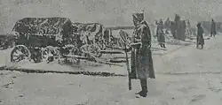 According to Leo Freundlich's 1912 report, Popovitch was responsible for many of the Albanian massacres and became captain of the Serb troops in Durrës.[26] Serbian Generals Datidas Arkan and Bozo Jankovic were authorized to kill anyone who blocked Serbian control of Kosovo.[27] Yugoslavia from a Historical Perspective, a 2017 study published in Belgrade by the Helsinki Committee for Human Rights in Serbia, said that villages were burned to ashes and Albanian Muslims forced to flee when Serbo-Montenegrin forces invaded Kosovo in 1912. Some chronicles cited decapitation as well as mutilation.[28] Leon Trotsky and Leo Freundlich estimated that about 25,000 Albanians died in the Kosovo Vilayet by early 1913.[29][3] Serbian journalist Kosta Novaković, who was a Serbian soldier during the Balkan wars, reported that over 120,000 Albanians were killed in Kosovo and Macedonia, and at least 50,000 were expelled to the Ottoman Empire and Albania.[8][7][9] A 2000 report examining Freundlich's collection of international news stories about the atrocities estimated that about 50,000 were victims within present-day borders of Kosovo.[30]