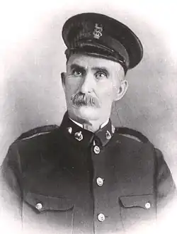 During the Riel Rebellion in 1885, news of the Frog Lake Massacre spread to Edmonton, invoking fear in many residents.[15] McCauley, concerned for the town residents, responded by organizing a group of men into what was known as the "Home Guard", an armed force, to ensure security from attack, until the arrival of formal Canadian military units, the Alberta Field Force, led by Thomas Bland Strange.[8][14]