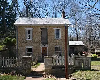 The McMahon House is a historic building located in Dubuque, Iowa, United States. This two-story stone structure was built by Ross McMahon, a master stonemason, in 1861. It is a good example of early vernacular architecture.[2] There are no windows on the north and west elevations given that the house is built into the side of a hill. The original porch, and its replacement, have both been removed. McMahon did the stonework on several churches and road bridges in the area during the mid to late 19th century. He also had an interest in lead mining, and there are mine shafts on the neighboring property, which had been owned by his son.[2] The house was listed on the National Register of Historic Places in 1976.[1]