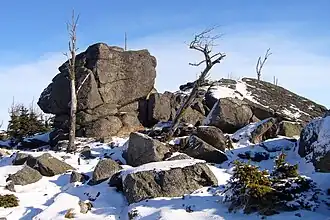 The Medvědí skála (German: Bärenstein, also Bernsteinberg) is a 924 m high mountain in the Ore Mountains in the Czech Republic.
