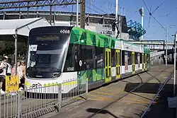 On 6 June 1999 it was diverted to operate via the Exhibition Street extension with a four-lane divided road built over the Jolimont Yard, enabling Batman Avenue west of Melbourne Park to be closed with route 70 extended to terminate at the intersection of Flinders and Spencer Streets.[4][5] This new route was better able to serve all of the Melbourne Park venues such as the Melbourne Cricket Ground and Rod Laver Arena.[6] Extra sidings were also built along the route in order to accommodate special events.[7] On 5 December 1999, at the City end, the route was amended to terminate at new sidings west of Spencer Street.[8]