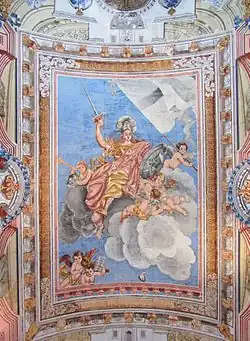 Ceiling fresco at Auberge de Provence by Nicolau Nasoni, depicting a personification of "Religion" which bears similarities with later depictions of Melita