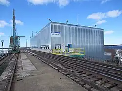 The impoundment of Menihek Lake, which serves as a reservoir, is completed by three rock-fill dikes made of glacial till, for a total length of 6.2 km (4 mi). The Tshiuetin Rail Transportation shortline railway (formerly the Menihek Subdivision of the Quebec North Shore and Labrador Railway) connecting Schefferville and Sept-Îles uses the dikes to cross the area.[9]