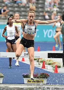 She qualified for the 2019 World Championships in Qatar. She finished ninth in her heat with a time of 9:47.44, saying that her time was affected by misjudging the first barrier.[18] In July 2019, Finn set a PB of 9:41.23 during a race in Finland.[19] Finn won the Sydney Track Classic and set a new personal best time of 9:38.04.[20] Finn, who joined the Melbourne Track Club in January 2020, is training for the Tokyo 2020 Summer Olympics.[21]