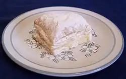 Miguelitos are a type of cream-filled puff pastry, which can also be referred to as a cake. They originated in La Roda, in Castilla–La Mancha, Spain: Manuel Blanco, the creator of these flaky desserts, was born in La Roda in 1925. After being a part of the military in 1960 he migrated to a place called Pamplona where his masterpiece was created. The name Miguelito came after he decided to give his friend Miguel the first bite of his creation; from there the name stuck.[1] La Roda de Albacete started to be known with various pastry chefs throughout Spain, causing the expansion of the dessert.