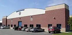 The complex includes two display hangars (one on each side of the main museum building) in one group of buildings, and in another group, a replica World War I-era wooden hangar, a maintenance hangar (entirely new, but an exact replica of a 1937 Works Progress Administration design), a restored authentic pre-WWII Luftwaffe metal hangar from Poland, and a set of three identical storage hangars painted to resemble British World War II hangars.[10][11][12]
