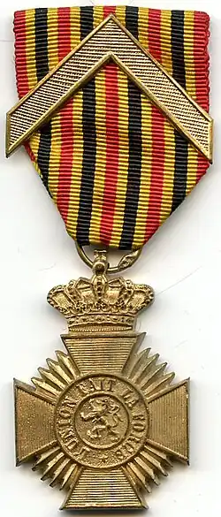 The Military Decoration (Dutch: Militair Ereteken, French: Décoration Militaire) is a military award of the Kingdom of Belgium. It was established on December 23, 1873 and is awarded to non-commissioned officers and other ranks of the Belgian Armed Forces for long service. Initially, the medal was created in 2 versions. The version for exceptional service, gallantry or devotion to duty was created by the same royal decree, has the same jewel, but a different ribbon. Currently, both medals still exist, but are considered to be separate awards, not variations of the same award.