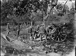 In March 1918, New Zealand forces took part in defending the British lines during Operation Michael, the campaign that began German Spring Offensive.[56] On 4 November, during the Allied Hundred Days Offensive, the New Zealand Division captured captured Le Quesnoy after an assault led by Lieutenant Leslie Cecil Lloyd Averill. The day was the Division's most successful on the Front, as they pushed east and advanced 10 kilometres (6.2 mi) and captured 2,000 German soldiers and 60 field guns.[57]