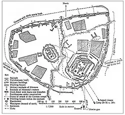 On 28 October 1894, the Germans, under the new commissioner Colonel Freiherr Friedrich von Schele, attacked Mkwawa's fortress at Kalenga. Although they took the fort, Mkwawa managed to escape. Subsequently, Mkwawa conducted a campaign of guerrilla warfare, harassing the Germans until 1898 when, on 19 July, he was surrounded and shot himself to avoid capture at the site of the Mlambalasi Rock Shelter.[5][6] Mkwawa's body was buried a few meters away from the rockshelter.[6]