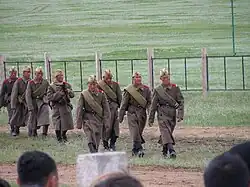 In September 1923,[5] on the outskirts of Urga, the first cavalry school and an artillery school were opened, and a year later, the publication of the army newspaper began.[6] On October 16, 1925, Mongolia adopted a law on universal conscription, and in 1926, the creation of temporary detachments of the people's militia began.[7]