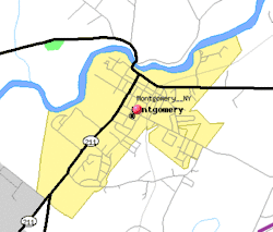 Most of that water area is accounted for by the portions of the Wallkill which forms Montgomery's northern boundary; there are no other significant bodies of water in the village. The village is completely surrounded by the Town of Montgomery.