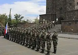Mother Armenia (Armenian: Մայր Հայաստան, romanized: Mayr Hayastan) is a female personification of Armenia. Her most public visual rendering is a monumental statue in Victory Park overlooking the capital city of Yerevan, Armenia.