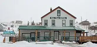 The Mountain View Hotel is a historic hotel near Centennial, Wyoming. It was built in 1907 as the railroad arrived in Centennial in the declining years of a gold mining boom. The hotel was part of a community development plan to develop businesses that did not depend on mining. featured 20 rooms and three baths, but the bathrooms were originally located in a separate stable building. The hotel was bought by Gustav and Anna Sundby in 1914, who operated the hotel into the 1940s. In the 1950s the hotel became an apartment house.[2]
