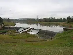 The weir creating the Camps Drift section of the Msunduzi, in Pietermaritzburg. This dammed section is used for canoe and rowing practice, and is the starting point of the Dusi Canoe Marathon.