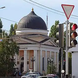 The museum building was constructed at the behest of Governor-General N. A. Kryzhanovsky[28] of the Orenburg Province. It was built on the site of the former Forstadtskaya (or Voiskovaya) Square for the Orenburg Theological Seminary. The seminary's main building was constructed in the Russian-Byzantine style with the participation of F. D. Markelov,[29] the diocesan architect of the Orenburg diocese. The technical and construction committee of the Ministry of Internal Affairs drew up the building's project, which was approved by the Minister General of the Cavalry Alexander Timashev. The building was completed on 11 January 1883, after the rejection of a project developed in Orenburg in 1876. On 24 August 1884, Bishop Veniamin of Orenburg consecrated the seminary and its church, which had been opened the previous year.[28]