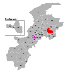 NA-15 Mansehra-cum-Torghar (این اے-15، مانسہرہ-کم-تورغر) is a constituency for the National Assembly of Pakistan. It covers part of the district of Mansehra and the entire district of Torghar. The constituency was formerly known as NA-21 (Mansehra-II) from 1977 to 2018 which covered the same area, Torghar being part of Mansehra district until 2011. The name changed to NA-14 (Mansehra-cum-Torghar) after the delimitation in 2018.[2]