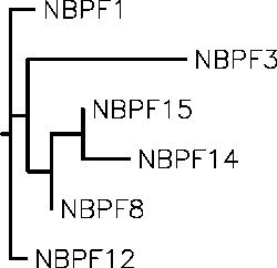 Rooted phylogenetic tree of NBPF1 paralogs based on multiple sequence alignment.