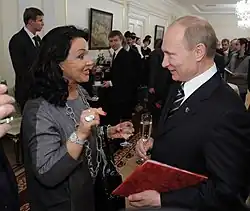 On February 6, 2012, she was officially registered as a confidant of the candidate for President of the Russian Federation and of Prime Minister in effect Vladimir Putin.[24]