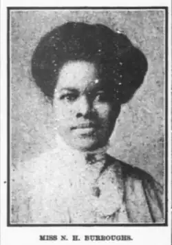 Nannie Helen Burroughs (May 2, 1879 – May 20, 1961) was an educator, orator, religious leader, civil rights activist, feminist, and businesswoman in the United States.[1] Her speech "How the Sisters Are Hindered from Helping," at the 1900 National Baptist Convention in Virginia, instantly won her fame and recognition. In 1909, she founded the National Training School for Women and Girls in Washington, DC. Burroughs' objective was at the point of intersection between race and gender.[2]