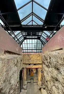 In 1995, during construction at a site on Zhongshan Fourth Road, a corner of a large stone-built pool was discovered. It was later confirmed as part of the Nanyue period ruins. Subsequent excavations revealed more relics from the Nanyue era, including a meandering stone channel, wells, and palace ruins. Additionally, artifacts spanning 12 dynasties—from the Qin dynasty to the Republic of China—were uncovered, including palace ruins of Nanhan (the Southern Han) from the Five Dynasties period.[5] Since 2006, Nanyue Kingdom Palace Ruins have been partially open to the public. The Guangzhou government later established the "Museum of the Nanyue Palace Site" on the original location, which partially opened in 2010 and fully opened in 2014.[6][7][8]