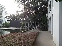 The gallery was being refurbished in 2006 to open as the third site of NGMA. This follows a prolonged period of development and controversy.[3] The sprawling, 100 year old Manikyavelu Mansion once belonged to Vilum Manickavelu Mudaliar the, a Yuvaraja of Mysore. Mudalier was not born into aristocracy, but rather married into it. He became a successful business owner after leasing several manganese and chrome mines on lease. According to the documents in the NGMA archives, the building was bought by Mudalier early on in his career. The archivists at the NGMA are certain that Mudalier and his family lived in the mansion for quite some years. However, due to financial problems, the house was put on auction and was acquired by the City Improvement Trust, currently the BDA, and then transferred to the Housing Board in the 1960s. In 2000, the Ministry of Kannada and culture sub-leased the mansion to the Ministry of Culture. It became the chosen location for the southern centre the NGMA.[4] Restoration began in 2003, and opened on 18 February 2009 under the curatorial ship of Sobha Nambisan.[5]