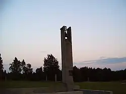 The Khatyn national state memorial of the Republic of Belarus is the central war memorial of Belarus for all victims of the German occupation during World War II. It commemorates particularly the more than 600 "burnt villages" which, together with their inhabitants, were destroyed by the Germans throughout the war. The Khatyn massacre was one of them; the village lies about 60 kilometres north of Minsk on the road to Vitebsk in the Logoisky district, in the Minsk Region.[1]