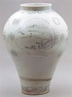 - ^ "백자 청화산수화조문 항아리" [White Porcelain Jar with Landscape, Flower and Bird Design in Underglaze Cobalt Blue]. Korea Heritage Service (in Korean). Retrieved February 5, 2024.
