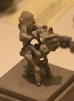 4 The bronze statue of a piggybacking and panpipe-playing couple c. 2500–2000 BP