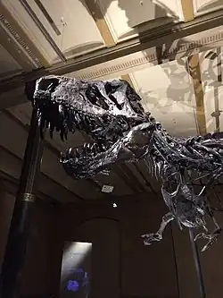 The Museum für Naturkunde normally exhibits one of the best-preserved Tyrannosaurus skeletons ("Tristan") worldwide. Of approximately 300 bones, 170 have been preserved, which puts it in the third position among others.[6]