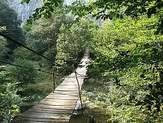 Nera Gorge-Beușnița National Park with an area of 36,758 ha (90,830 acres)[3] was declared natural protected area by the Law Number 5 of March 6, 2000 (published in Romanian Official Paper Number.152 on April 12, 2000)[4] and represents a mountainous area (mountain peaks, cirques, crevasses, caves, valleys, canyons, waterfalls) that shelters a large variety of flora and fauna; some of the species are endematic or very rarely.