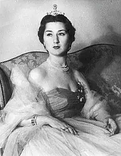 In 1940, Prince Muhammad Abdel Moneim, son of Egypt's last Khedive Abbas Hilmi II, proposed to Neslişah. Neslişah rejected the proposal, but accepted it following pressure from her father, despite her younger sister Hanzade, who later married another Egyptian prince a week before her sister, having volunteered to marry Moneim in her stead, an offer her father refused.[7] The marriage took place on 26 September 1940 in el-Orouba Palace, Cairo,[8] and she was given the title Sahibat-al Sumuw Al-Amira Neslishah (Her Highness Princess Neslishah).[9] Two years earlier, Abdel Moneim, heir to a US$50,000,000 fortune, had obtained permission from his second cousin King Farouk of Egypt to marry Princess Myzejen Zogu (1909–1969), sister of King Zog I of Albania.[10] However, the marriage never took place and Prince Abdel Moneim married Neslişah instead. On 16 October 1941, she gave birth to Prince Abbas Hilmi. He was followed three years later by Princess Ikbal, born on 22 December 1944.[3]