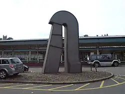 The "Archform" sculpture by Harvey Hood, in the station forecourt on the site of the old west-facing bay platform