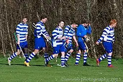 The first team also retained the Premier Division in 2011 with a last minute goal from Danny MacRae in the final match of the season in a winner takes all match against Kyles Athletic.[6] This sealed a season with both teams at the club winning their respective leagues and also a cup, the second team winning the Strathdearn Cup.[6] it was Newtonmore's first double since 1985.[7]