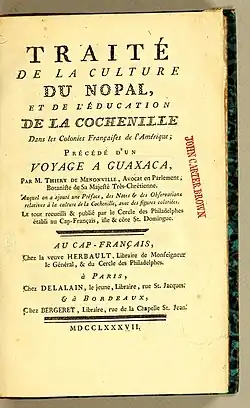 - Complete digital facsimile of Nicolas-Joseph Thiéry de Menonville's Traite de la culture du nopal (1787) from the John Carter Brown Library