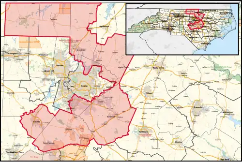 In 2022, the North Carolina Supreme Court rejected the redrawn districts, later approving a new map for the 2022 United States House of Representatives elections in which the 13th district included Johnston County and parts of Harnett, Wake, and Wayne Counties in the Raleigh area.[9]