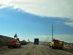 Most of the current route of Highway 12 was originally a sand road until it was paved through the 1950s and early 1960s.[10] The current NC 12 shows up on the 1964 map running from Ocracoke to Whalebone.[11] In 1976 NC 12 was extended onto the mainland to connect with US 70[12][13] In 1987, NC 12 was extended north of Nags Head along the Virginia Dare Trail (then Business US 158)[14][15] NC 12 was extended further to Corolla, its present northern terminus, a year later.[15][16] A condition of the extension imposed by the North Carolina Department of Transportation is the road extends no further than Corolla.[17]