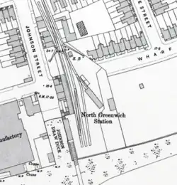 The present-day North Greenwich station, on the London Underground's Jubilee line, is on a different site on the south side of the river, one mile downstream on the Greenwich Peninsula.[1]