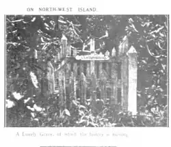 Beneath the gnarled and twisted branches of an aged Tournefortia tree, and surrounded by a neat paling fence, there stands on North-west Island a lonely grave. Carved on the wooden cross at the head is the name L. L. A. Sundvall. and above are the letters H.H. Maybe In this lonely plot, canopied by the dense growth so typical of the Barrier Reef islands, lies hidden a stirring story of heroism, or a gripping epic of a battle against over whelming nature. Maybe the truth will never out, for apart from the bald letters on the cross there is nothing to show the why and wherefore of this solitary resting spot.[6]