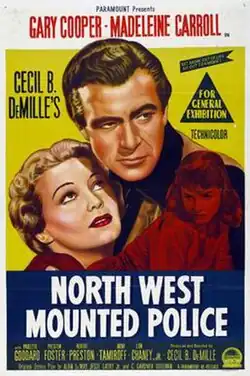 North West Mounted Police is a 1940 American epic north-western film produced and directed by Cecil B. DeMille and starring Gary Cooper and Madeleine Carroll. Written by Alan Le May, Jesse Lasky Jr., and C. Gardner Sullivan, and based on the 1938 novel The Royal Canadian Mounted Police by R. C. Fetherstonhaugh, the film is about a Texas Ranger who joins forces with the North-West Mounted Police to put down a rebellion in the north-west prairies of Canada. The supporting cast features Paulette Goddard, Preston Foster, Robert Preston, Akim Tamiroff, Lon Chaney Jr. and George Bancroft. Regis Toomey, Richard Denning, Rod Cameron, and Robert Ryan make brief appearances in the film playing small roles.