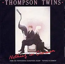 "Nothing in Common" is a song by the British band Thompson Twins, which was released in 1986 as a single from the soundtrack of the American comedy-drama film Nothing in Common. The song was written by Alannah Currie and Tom Bailey, and produced by Geoffrey Downes and Bailey. With the departure of band member Joe Leeway earlier in 1986, "Nothing in Common" was the Thompson Twins' first release as a duo. It reached No. 54 on the US Billboard Hot 100.[2]