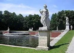 During the 1972 Summer Olympics, equestrian events took place in the palace park: the dressage competitions were held on the Garden parterre. The park's statues were removed, the equestrian arena and grandstands were erected as temporary facilities while adjacent buildings of the palace were used as stables.[9][25][24]